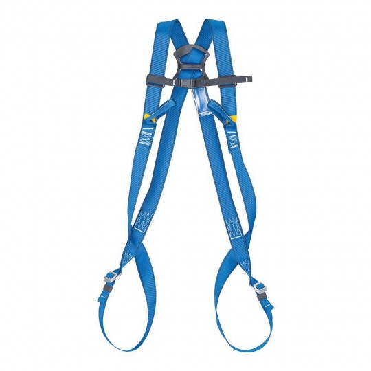 - Szelki do pracy na wysokości wyposażone w tylną klamrę zaczepową i przedni punkt zaczepowy.