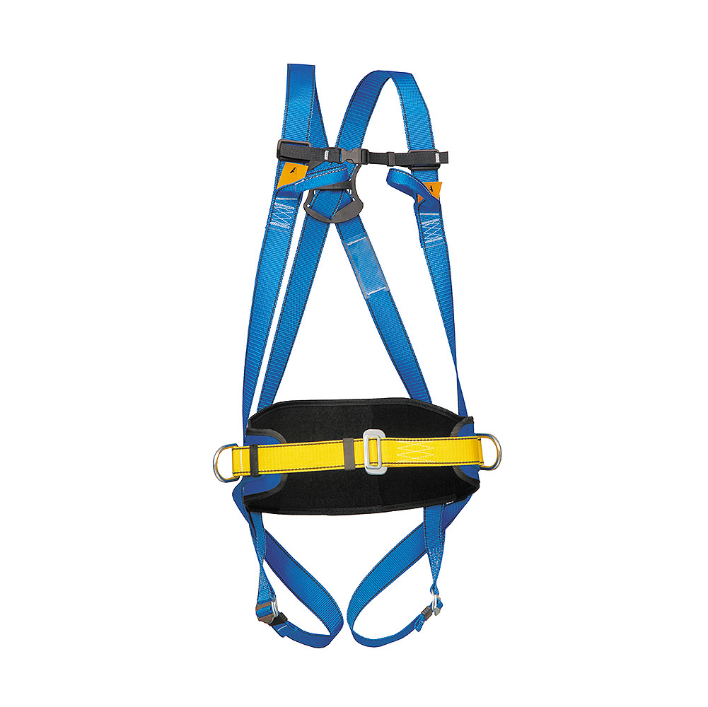 wyposażone w przednią i tylną klamrę zaczepową oraz pas do pracy w podparciu z bocznymi klamrami zaczepowymi.Amortyzator bezpieczeństwa z nieregulowaną linką bezpieczeństwa ABM/LB101