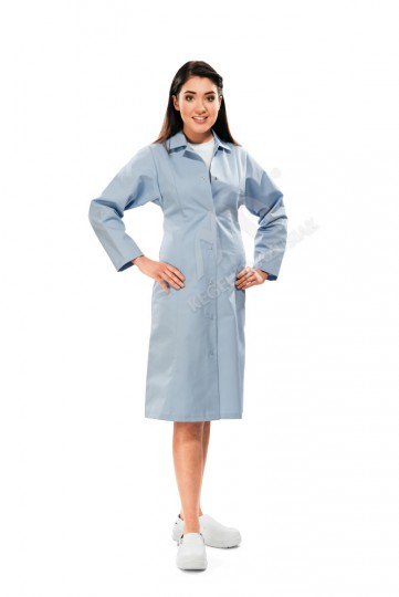 Dostępne także fartuchy wykonane z tkaniny KLOPMAN w kolorze BIAŁYM, BŁĘKITNYM i SELEDYNOWYM.