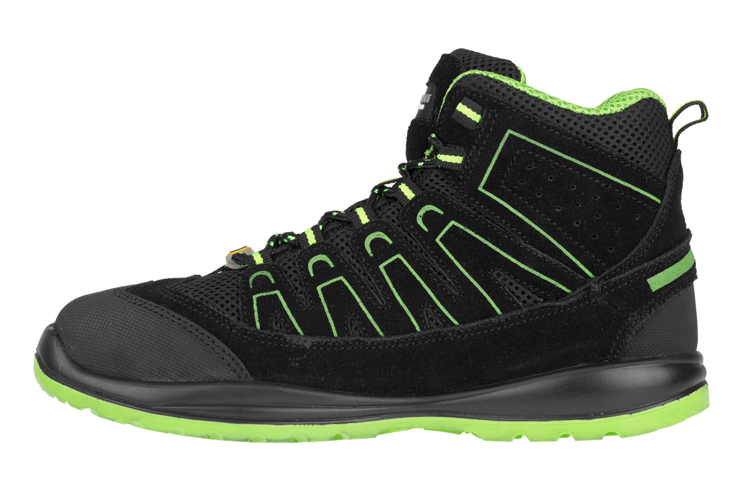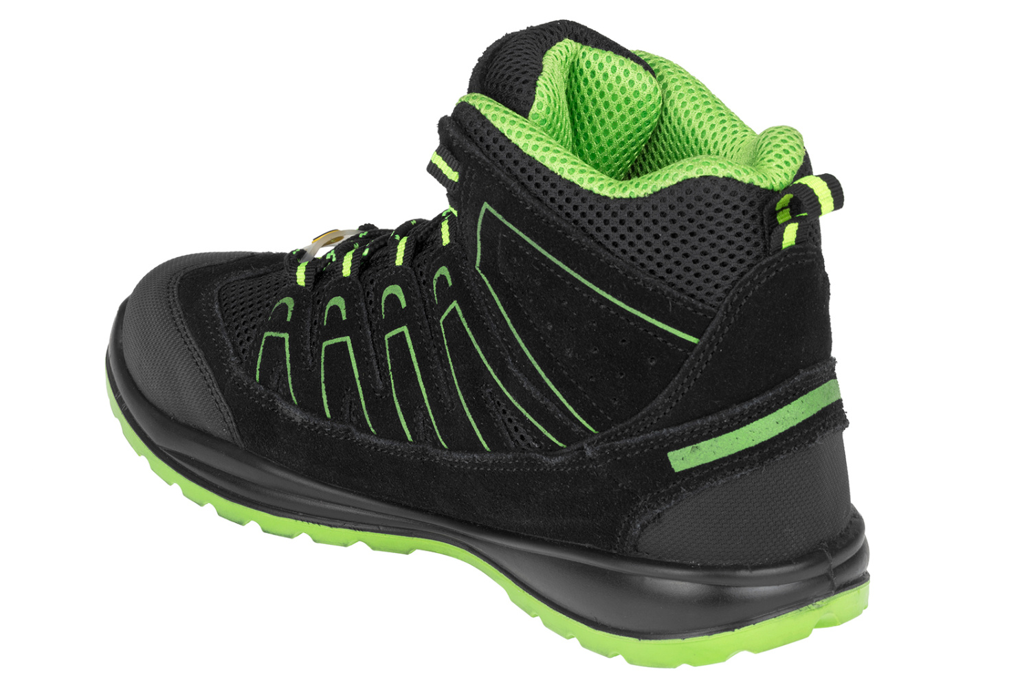 Nowoczesne buty do kostki, wykonane z zamszowej skóry bydlęcej, odpowiednie do wszechstronnej pracy i wypoczynku. Obuwie ochronne S1P jest wyposażone w stalowy podnosek i wkładkę antyprzebiciową. Obuwie odpowiednie do strefy EPA, wymagającej właściwości antystatycznych ESD.