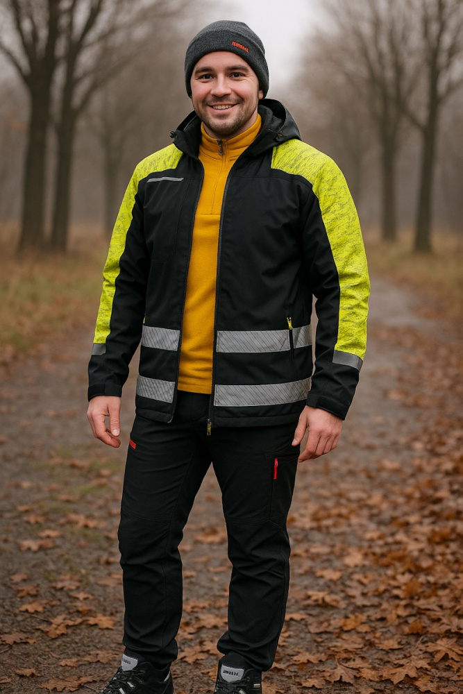 Model spełnia wymagania norm EN 343 (klasa 4/3/X) oraz EN 17353 (typ AB3), oferując ochronę zarówno przed deszczem, jak i w warunkach ograniczonej widoczności. Zastosowanie segmentowych taśm odblaskowych oraz fluorescencyjnych wstawek znacząco poprawia bezpieczeństwo pracy po zmroku lub w trudnych warunkach pogodowych.