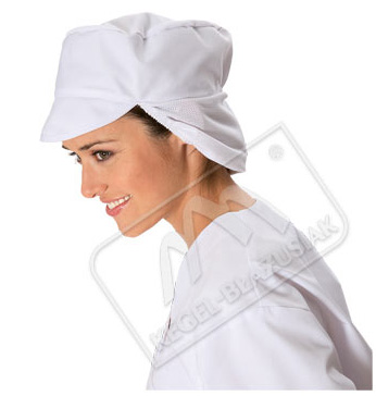 - z tyłu czapki siatka na włosy z gumą dopasowującą.