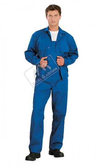 Spodnie wykonane z antyelektrostatycznej tkaniny KLOPMAN IND NEGA-STAT 240 g/m2 o składzie 65% PES, 35% BAW + włókno antyelektrostatyczne. W ciągłej sprzedaży kolor niebieski.
