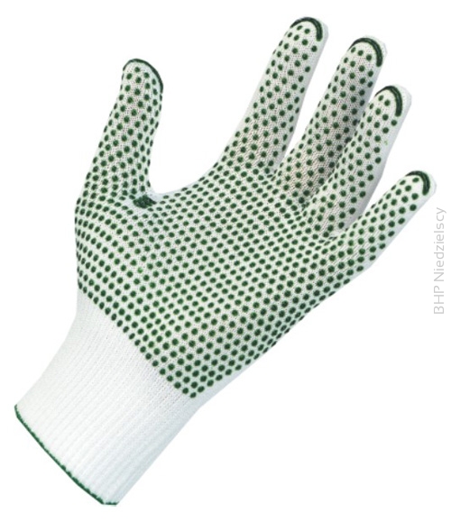 Rękawice czyste (bezpyłowe), nie pozostawiające zanieczyszczeń na trzymanych przedmiotach. Szeroko stosowane ze względu na ich zalety: dobre parametry ochronne, wysoki komfort pracy, dobre przyleganie do dłoni. Posiadają atest PZH do prac pomocniczych w przemyśle spożywczym. Cienkie, uiglenie 13. Bezszwowa konstrukcja, swobodnie przepuszczają powietrze. 100% poliamid nakrapiany PCV.