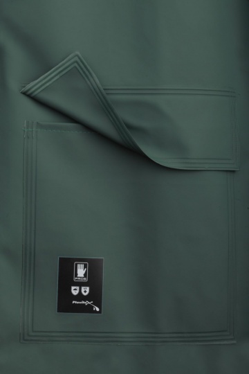 - Wykonany z tkaniny PLAVITEX ANTISTATIC (tkanina na podkładzie poliestrowym, jednostronnie powlekana PVC). Charakteryzuje się odpornością na rozdzieranie i wodoszczelnością szwów. Skład chemiczny powleczenia posiada właściwości antystatyczne i gwarantuje odporność tkaniny na niekorzystne warunki atmosferyczne oraz zginanie przy temperaturach do -50° C. Materiał spełnia wymogi norm EN 343 oraz EN 1149-5, co potwierdzono w badaniach przeprowadzonych przez akredytowany instytut badań materiałów włókienniczych.