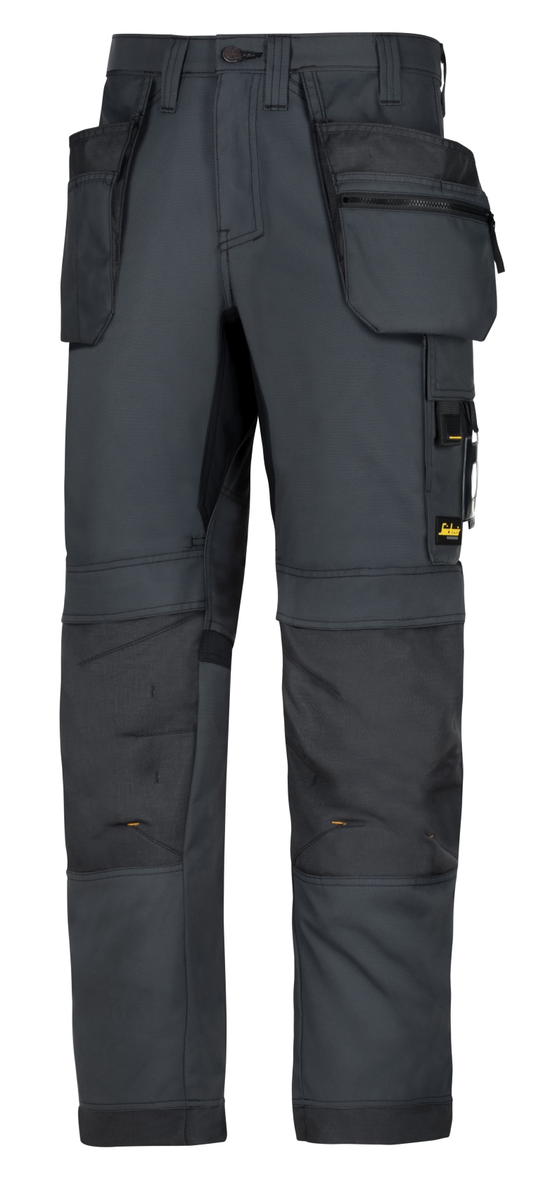 - Łatwodostępne worki kieszeniowe w tym z komorą na suwak, kieszeń narzędziowa na nogawce z mocowaniem na nóż, miejsce na telefon i odpinane mocowanie identyfikatora.