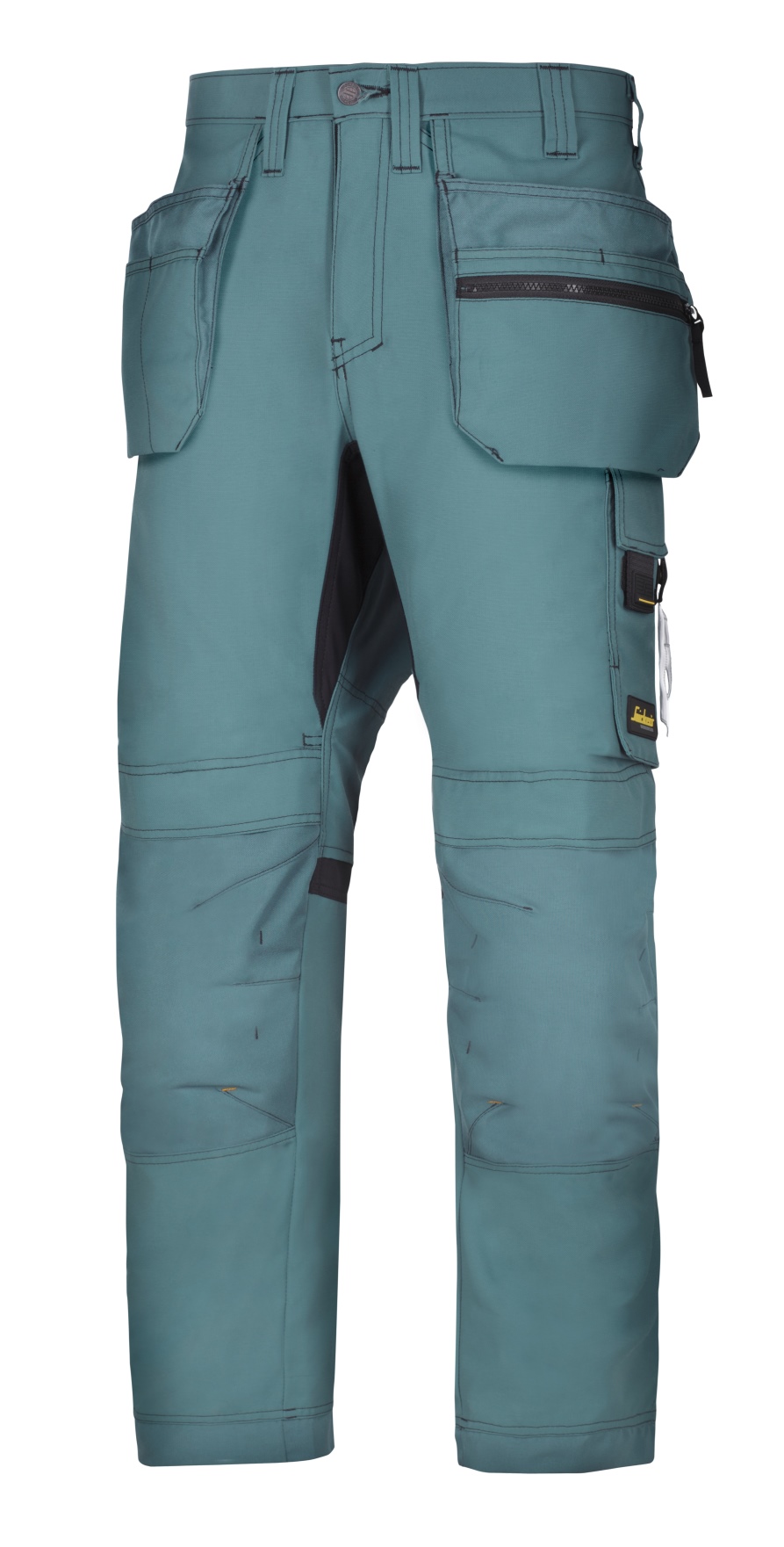 - Wzmocnienia z materiału Cordura® zwiększające trwałość na kolanach, krawędziach nogawek oraz workach kieszeniowych.